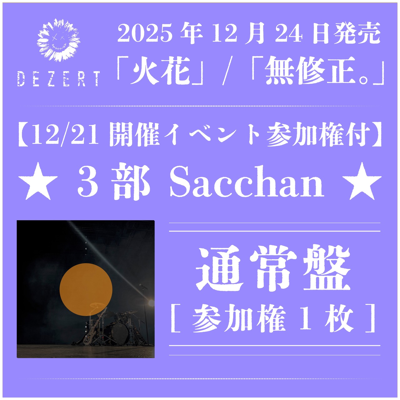 DEZERT 12/21開催 ★3部[Sacchan]イベント参加権[1枚]付★ 2025.12.24 DEZERT / 「火花」/「無修正。」【通常盤】