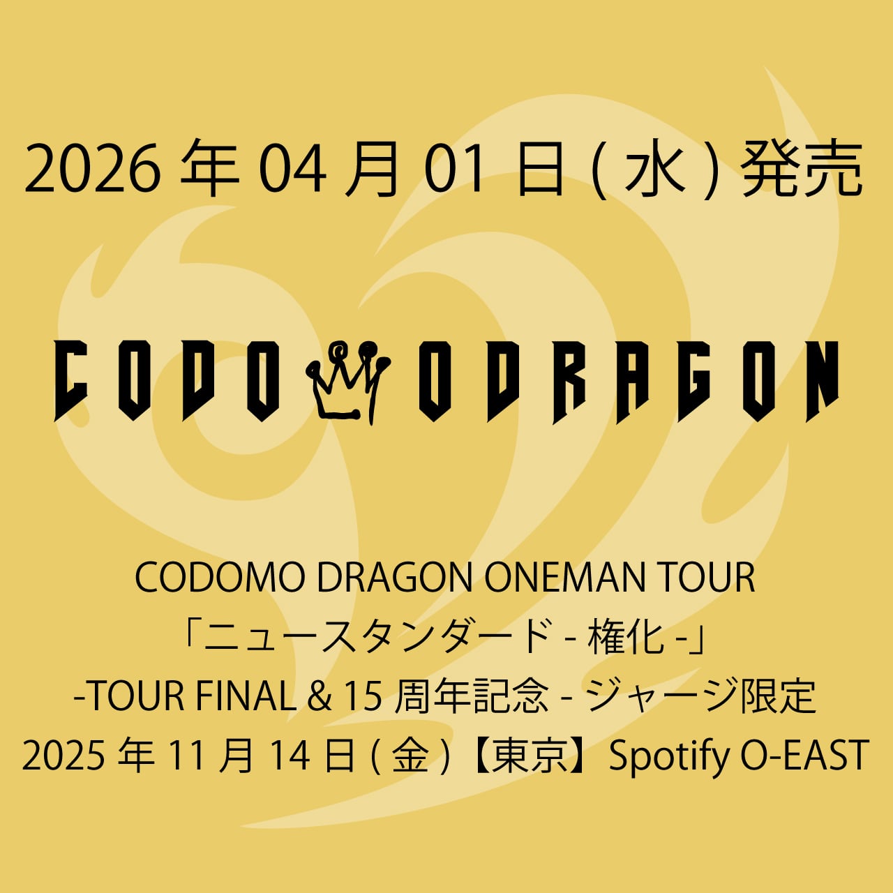 2026.04.01 コドモドラゴン / CODOMO DRAGON ONEMAN TOUR「ニュースタンダード-権化-」 -TOUR FINAL & 15周年記念-ジャージ限定 2025年11月14日(金)【東京】Spotify O-EAST